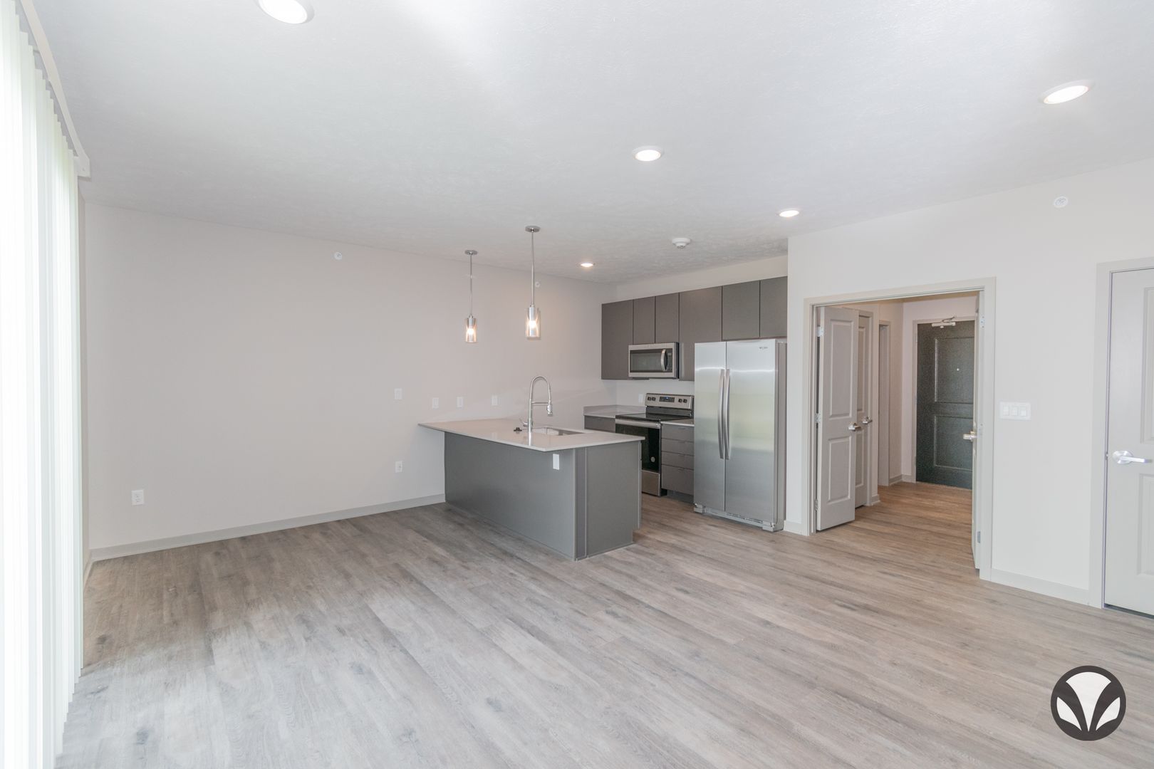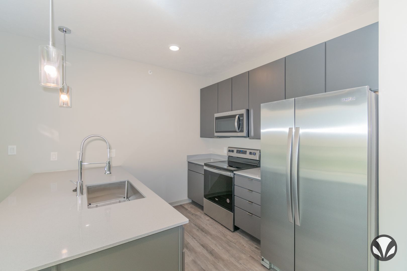 Find everything you'll ever need in our Amalfi floorplan with 575 square feet of living space. This floorplan offers a deck with a wide open view of the green space around you. Inside you'll find a special place to call home with a fully-equipped, state-of-the-art kitchen. A built-in desk makes working from home a breeze. A walk-in closet and stackable washer/dryer ensure you'll have everything you need.