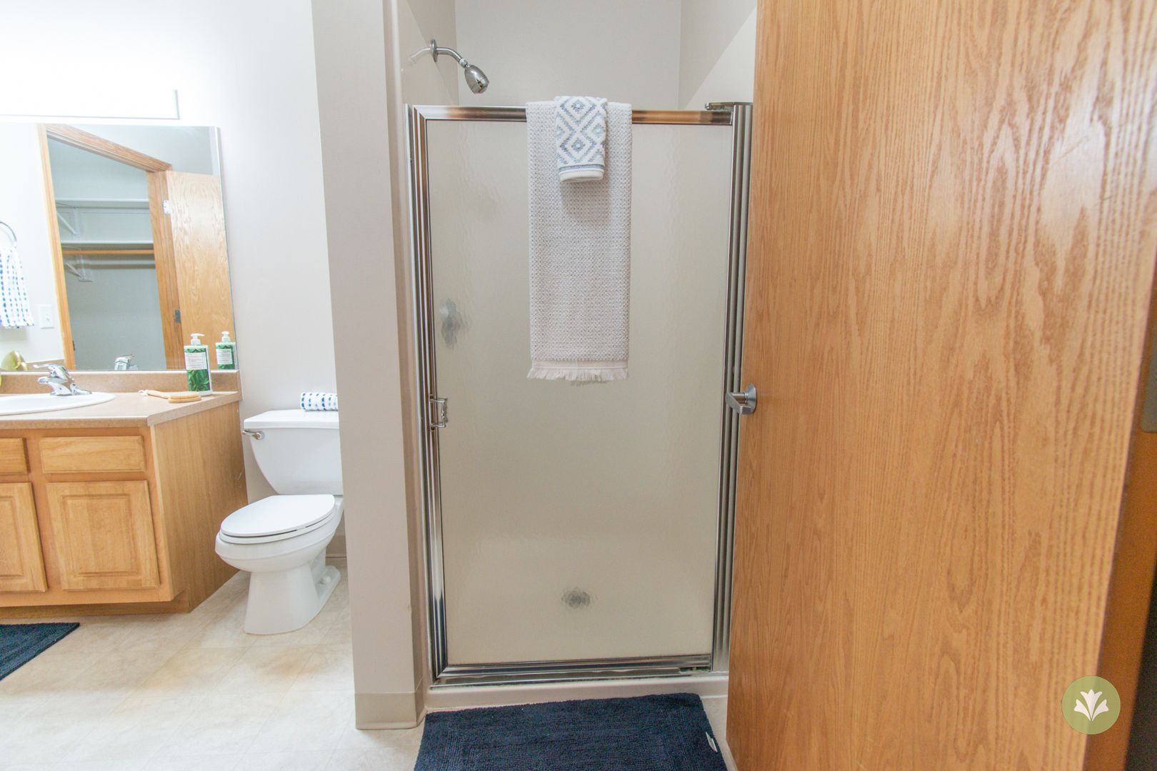 This is our Burr Oak floorplan with two bedrooms, one and three quarters bathrooms, and 1,242 square feet of living space. Please call a member of our friendly leasing staff for more information!