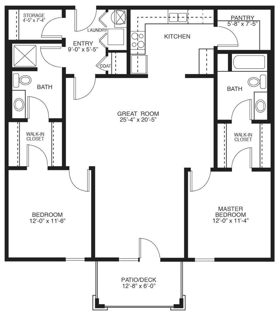 Burr Oak - Enormous 2 bedroom complete with washer/dryer, storage space & walk-in pantry.