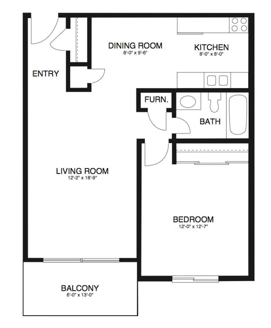 This is our Elmwood floorplan with one bedroom, one bathroom, and 740 square feet of living space. This floorplan offers generous storage space and a private patio/balcony. Please call a member of our friendly leasing staff for more information!