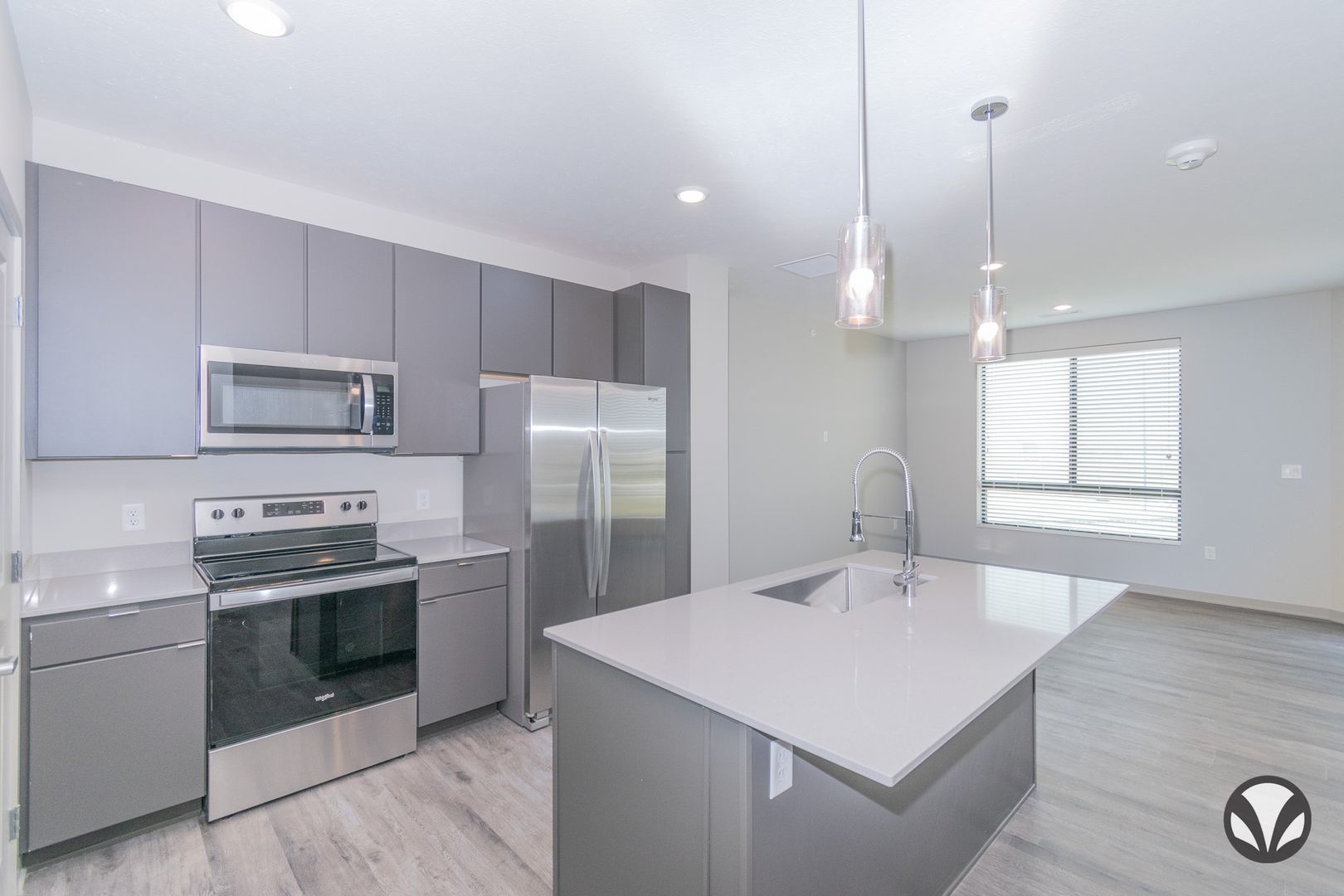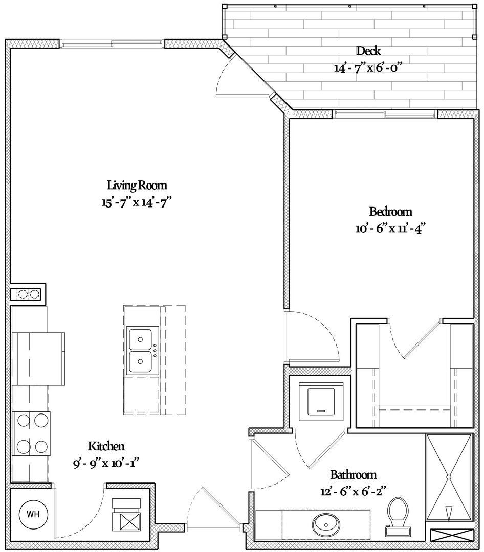 This is our 1 bedroom, Alassio floorplan, with 728 square feet. Take in the scenic views of acre upon acre of green space from your deck. Inside, enjoy the open concept kitchen perfect for entertaining. Your bedroom features a dreamy walk-in closet, while your bathroom includes your stackable washer & dryer.
