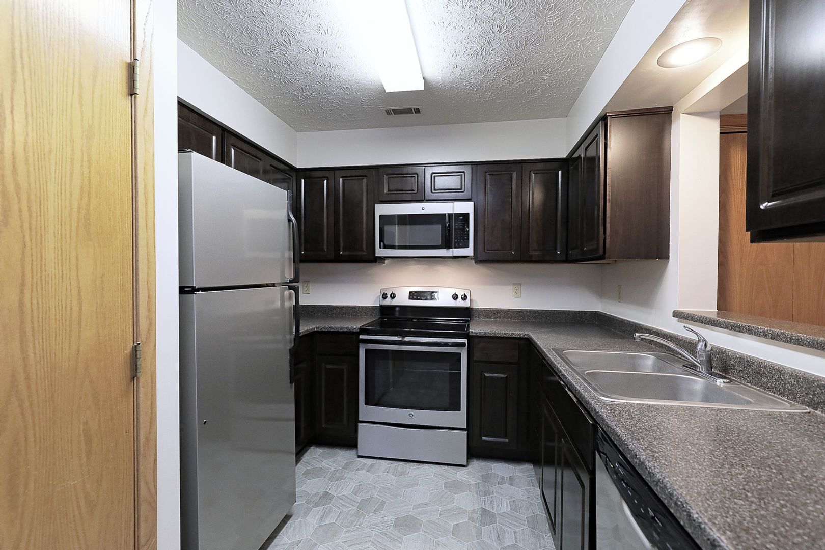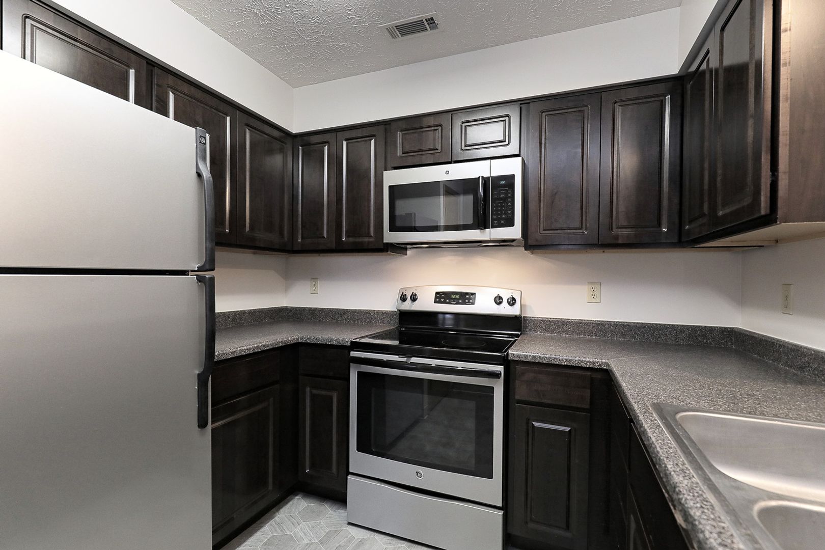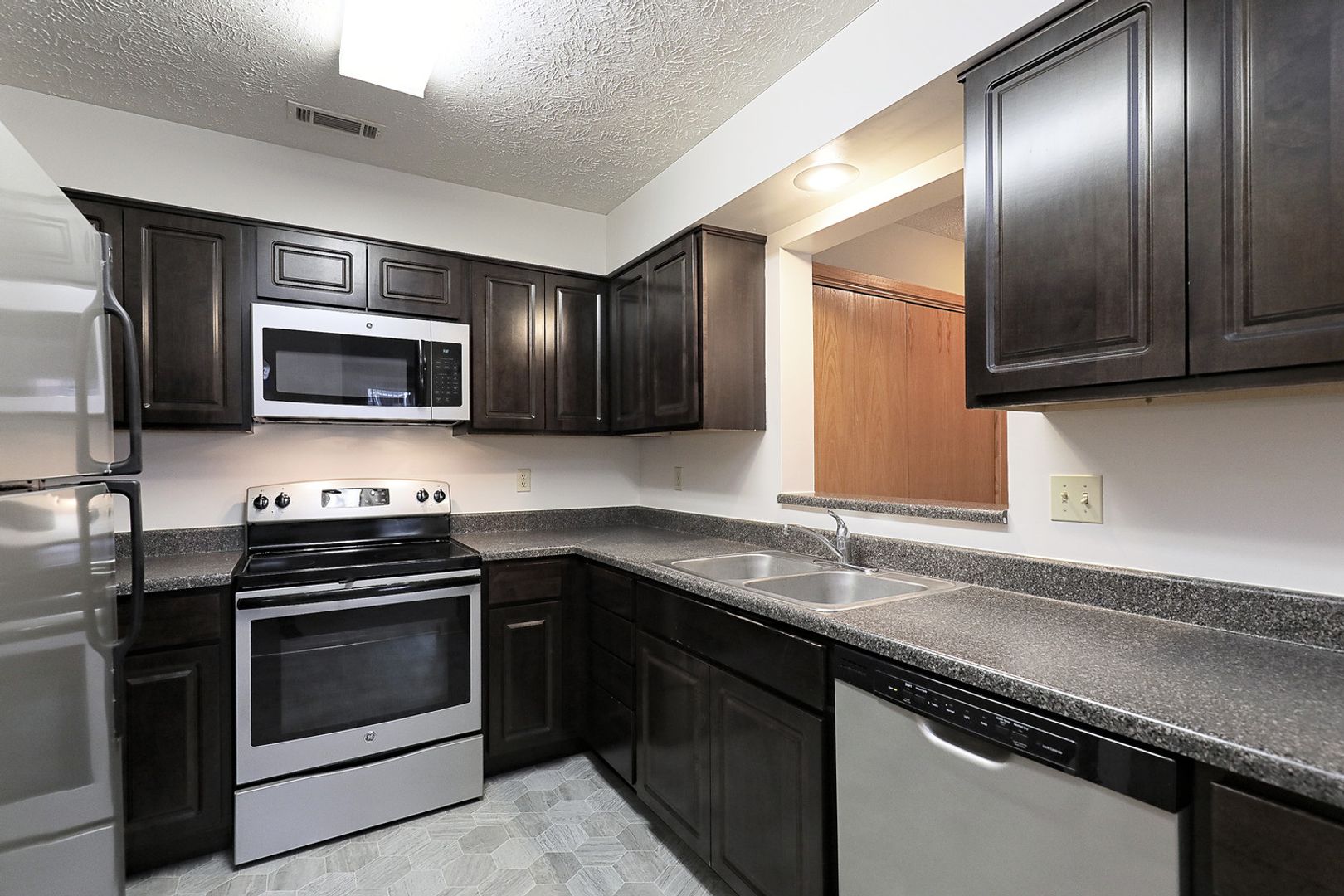 Americana Patio - Remodeled 2 bedroom/2bathroom with fog painted cabinets, white countertops & silver appliances