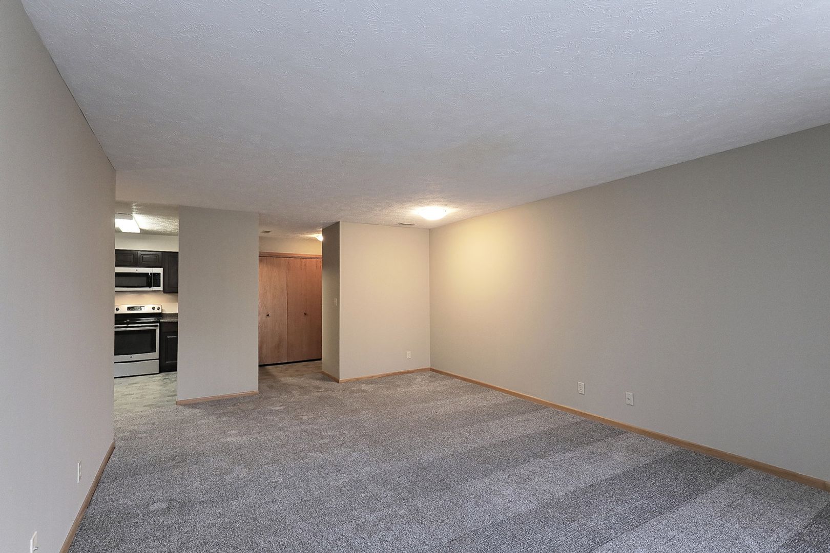 This is our Americana Patio floorplan with two bedrooms, two bathrooms, and 1,147 square feet of living space. This floorplan offers an oversized primary bedroom, fully-equipped kitchen, large walk-in closet, private entrance and patio, and a washer/dryer in-unit. Please call a member of our friendly leasing staff for more information!
