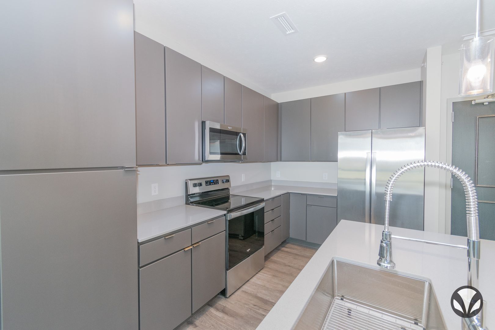 Explore our 1 bedroom Positano floorplan with 840 square feet. Relish the green spaces around you with a view from your deck. Inside, take a seat at your island to enjoy your open kitchen which comes fully equipped. Kick back in your spacious bedroom or bask in the natural light of your living room with its oversized windows. Every unit also comes with its own washer & dryer!