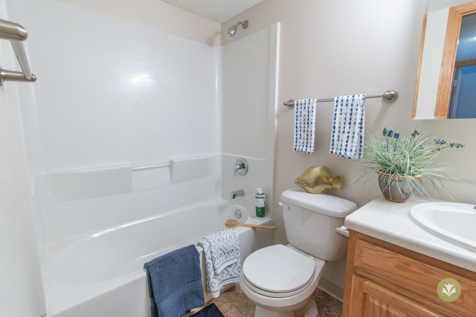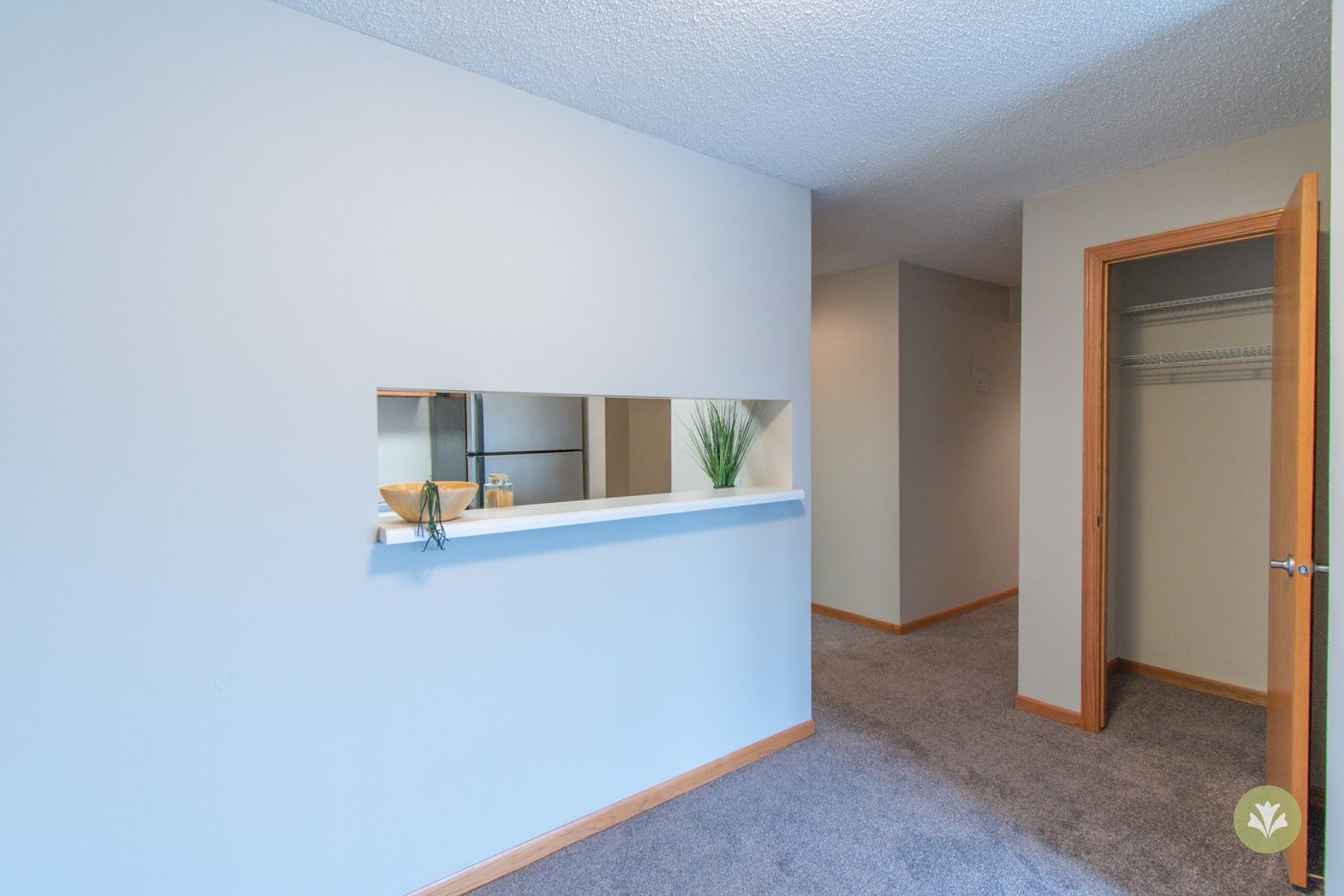 This is our Evergreen floorplan with two bedrooms, two bathrooms, and 920 square feet of living space. This floorplan offers spacious living areas and a fully-equipped kitchen. Please call a member of our friendly leasing staff for more information!