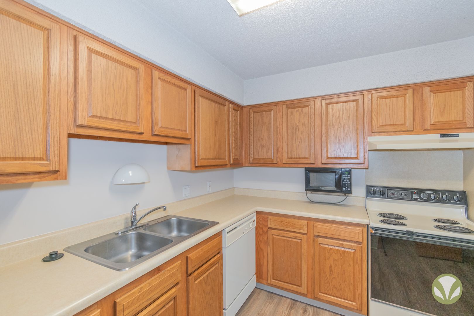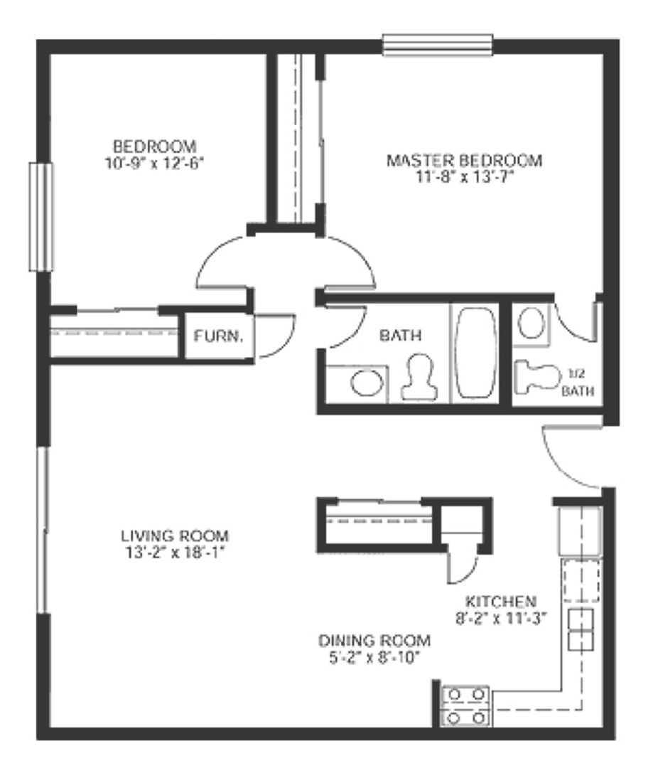This is our Cedar II floorplan with two bedrooms, two bathrooms, and 967 square feet of living space. Please call a member of our friendly leasing staff for more information!