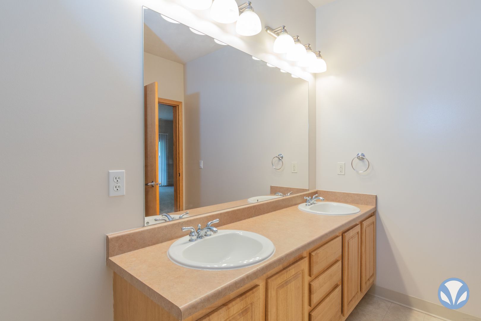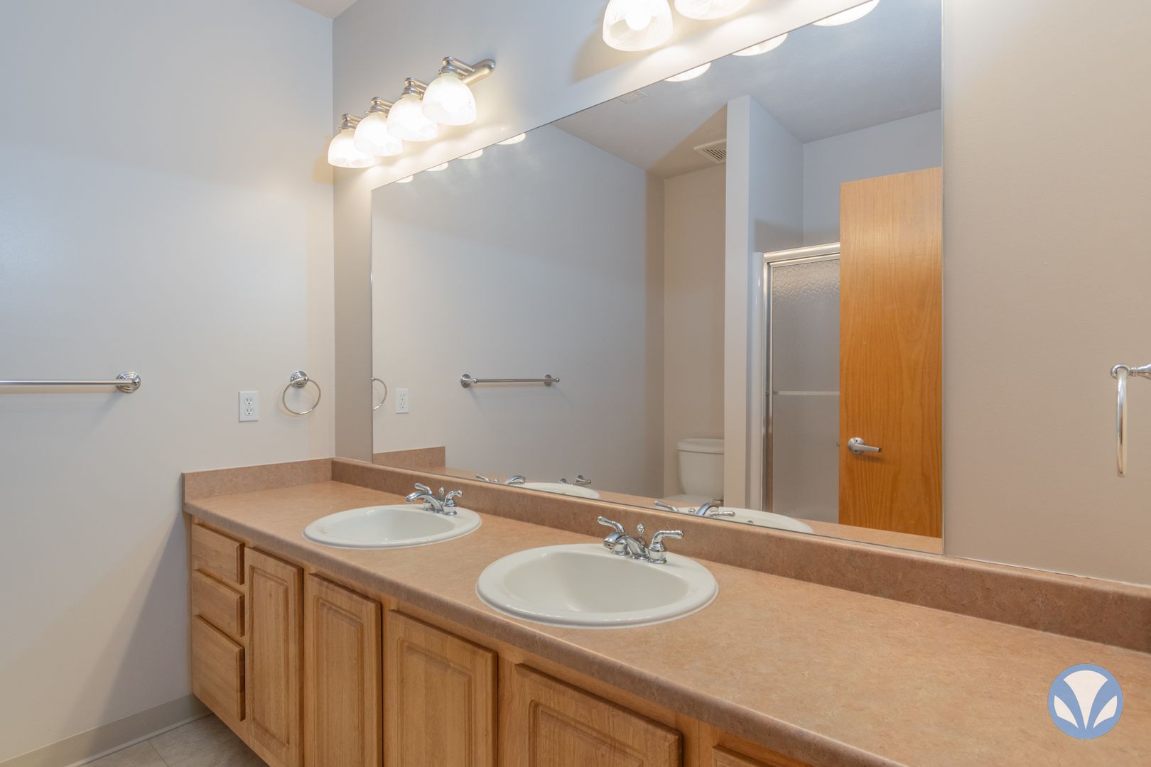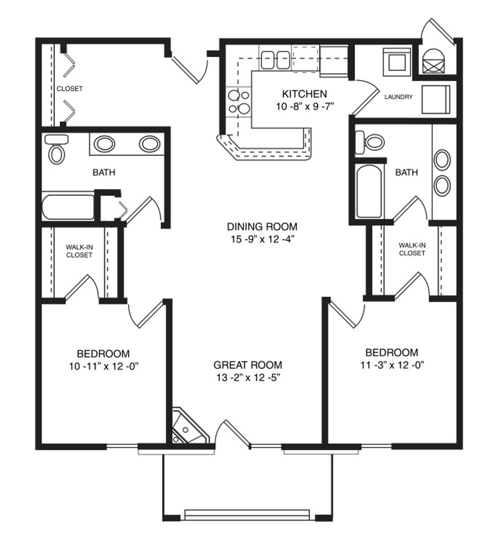 This is our Sunset floorplan with two bedrooms, two bathrooms, and 1,281 square feet of living space. This floorplan offers a fully-equipped kitchen, washer/dryer in-unit, and spacious living areas. Please call a member of our friendly leasing staff for more information!