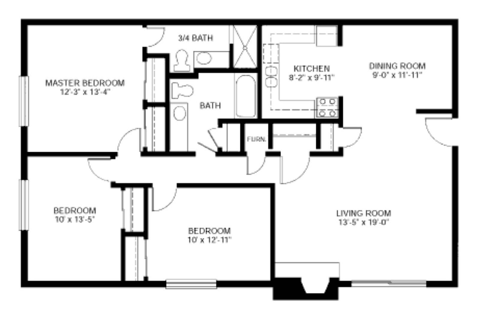 Willow - 3 bedroom & 2 bath apartment with a fireplace.