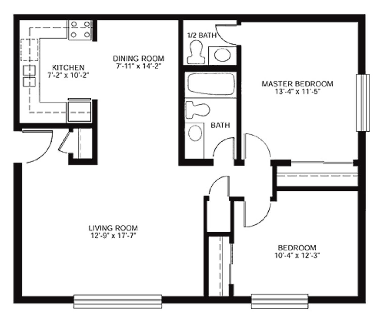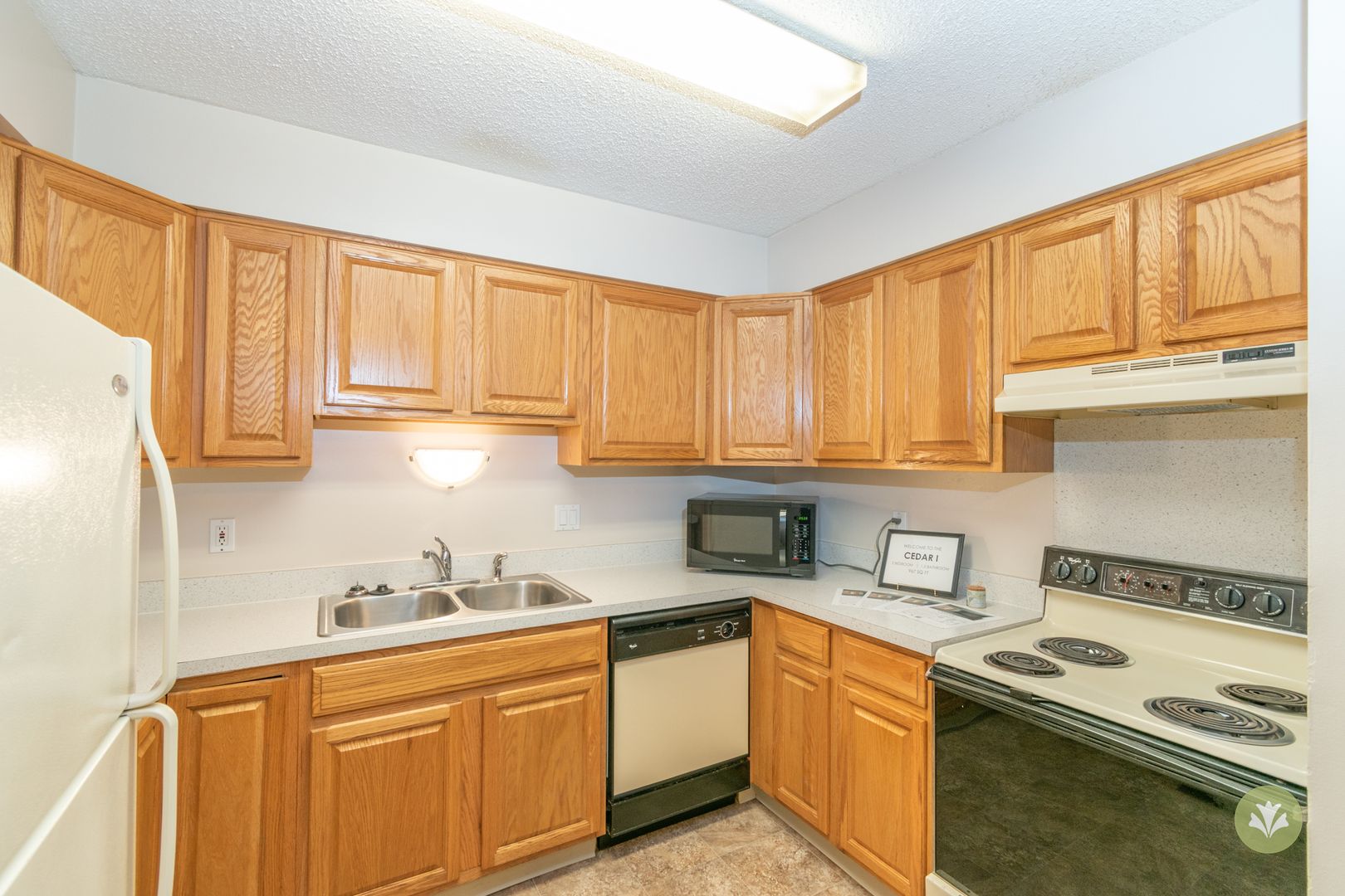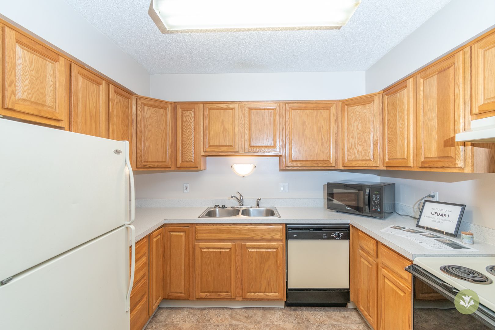This is our Cedar I floorplan with two bedrooms, two bathrooms, and 967 square feet of living space. This floorplan offers a fully-equipped kitchen and generous storage space. Please call a member of our friendly leasing staff for more information!