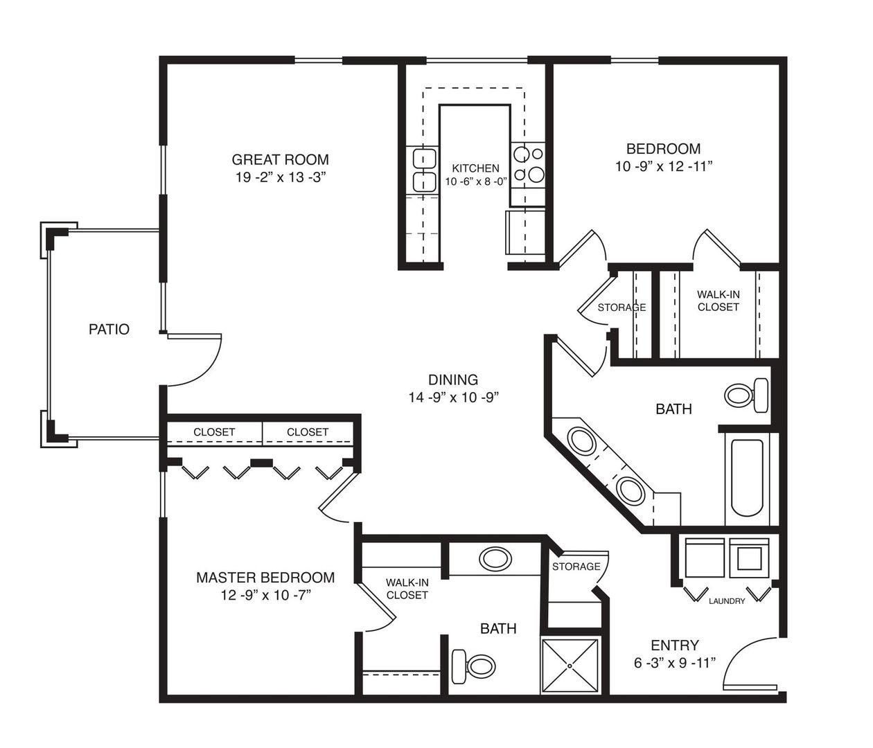 This is our Blue Spruce I floorplan with two bedrooms, two bathrooms, and 1,277 square feet of living space. This floorplan offers spacious living areas and a fully-equipped kitchen. Please call a member of our friendly leasing staff for more information!